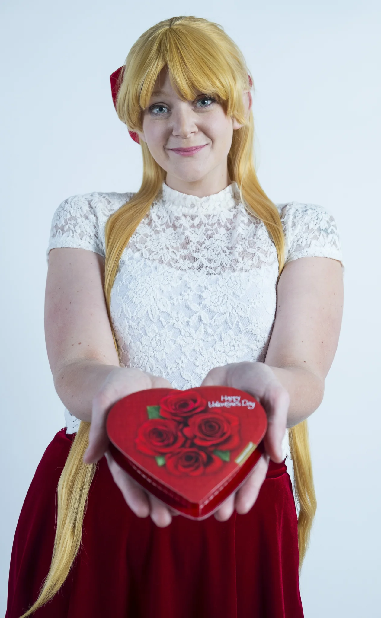 A while back Allybelle, Mermaid Child, Kirsten, and I were trying to bounce around ideas for a possible Valentine's Day shoot. The idea of going with Sailor Moon came up but this time around we wanted to do something more cute. Kirsten referenced a pic that was originally in one of the manga volumes and that gave us the idea to go for a similar theme.