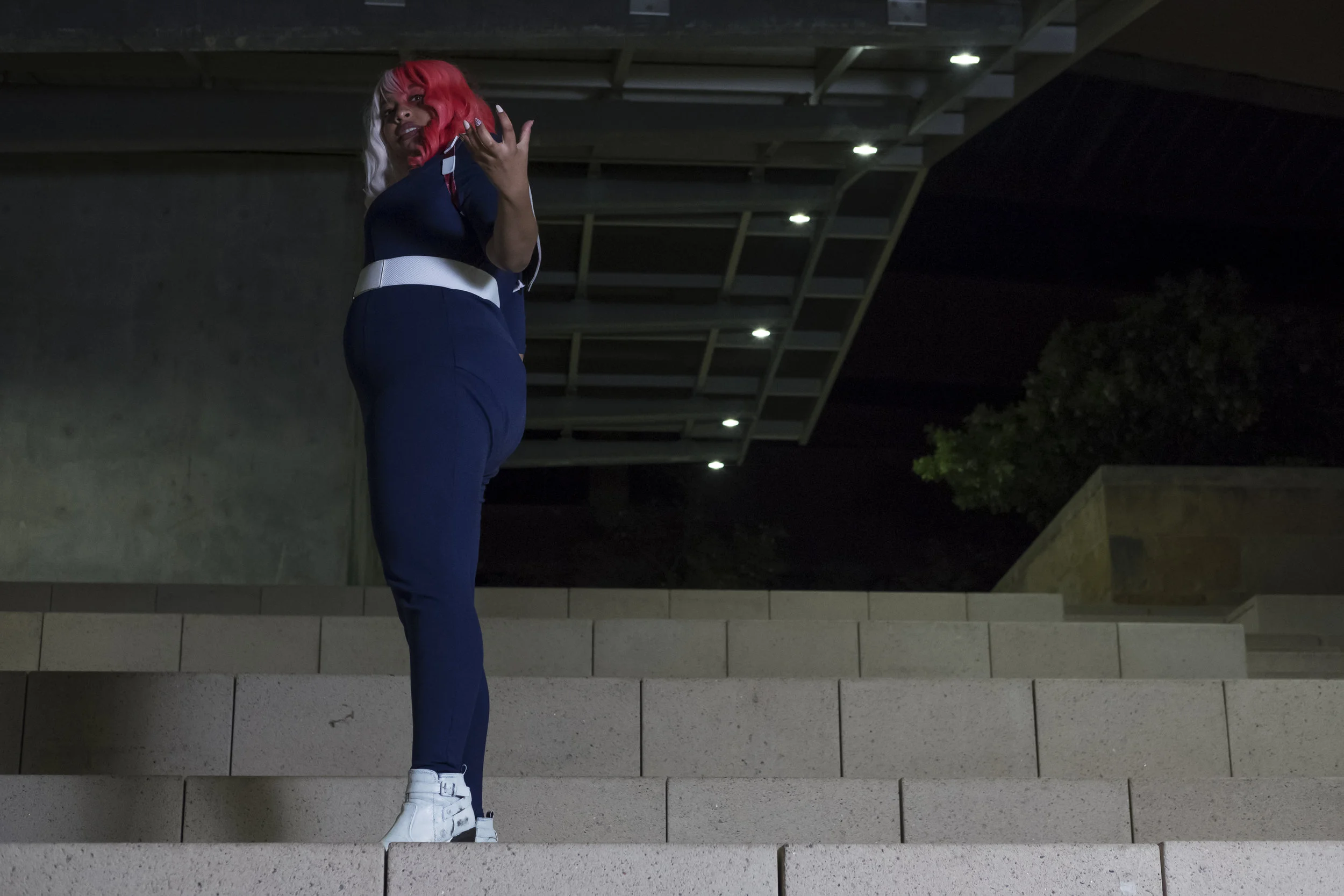 As for the skyline... since a good chunk of us live in the Austin area we had one readily available. It was just a matter of chosing where exactly to shoot. I knew right away that we should stay the hell away from Sixth Street. Given Mount Lady and Midnight's outfits I sure didn't want them to fend off drunken dude bros. A few years ago I had actually worked downtown in an area called the Second Street District not far from the Austonian. So I was a bit familiar with what was around there and figured some spots could make for good pics. I did some walk arounds both during the day and at night to figure out if they would work and found even a few more places that had potential.