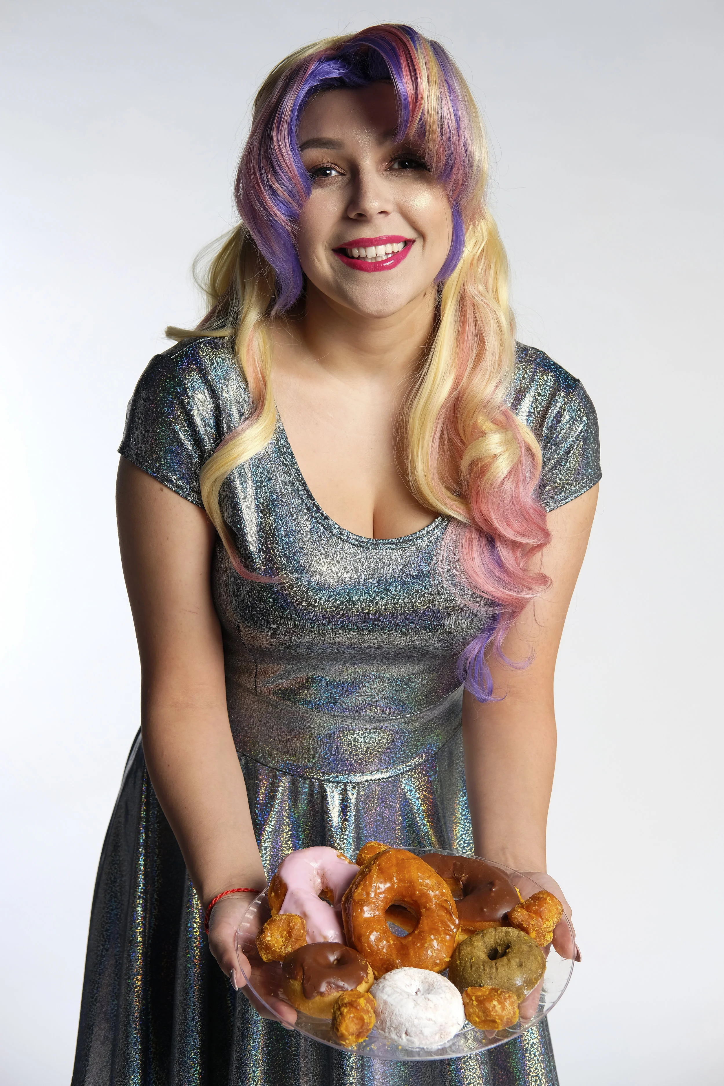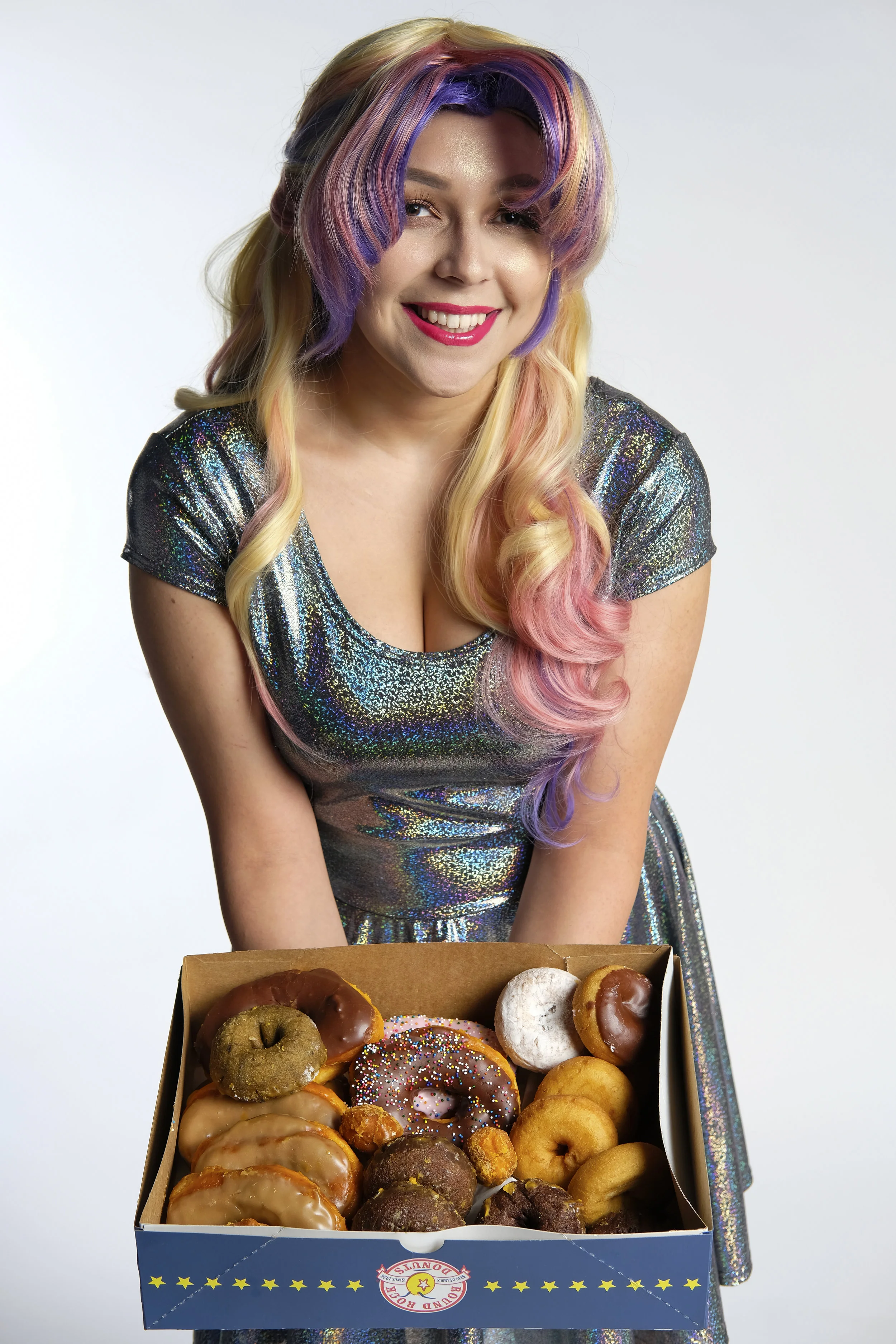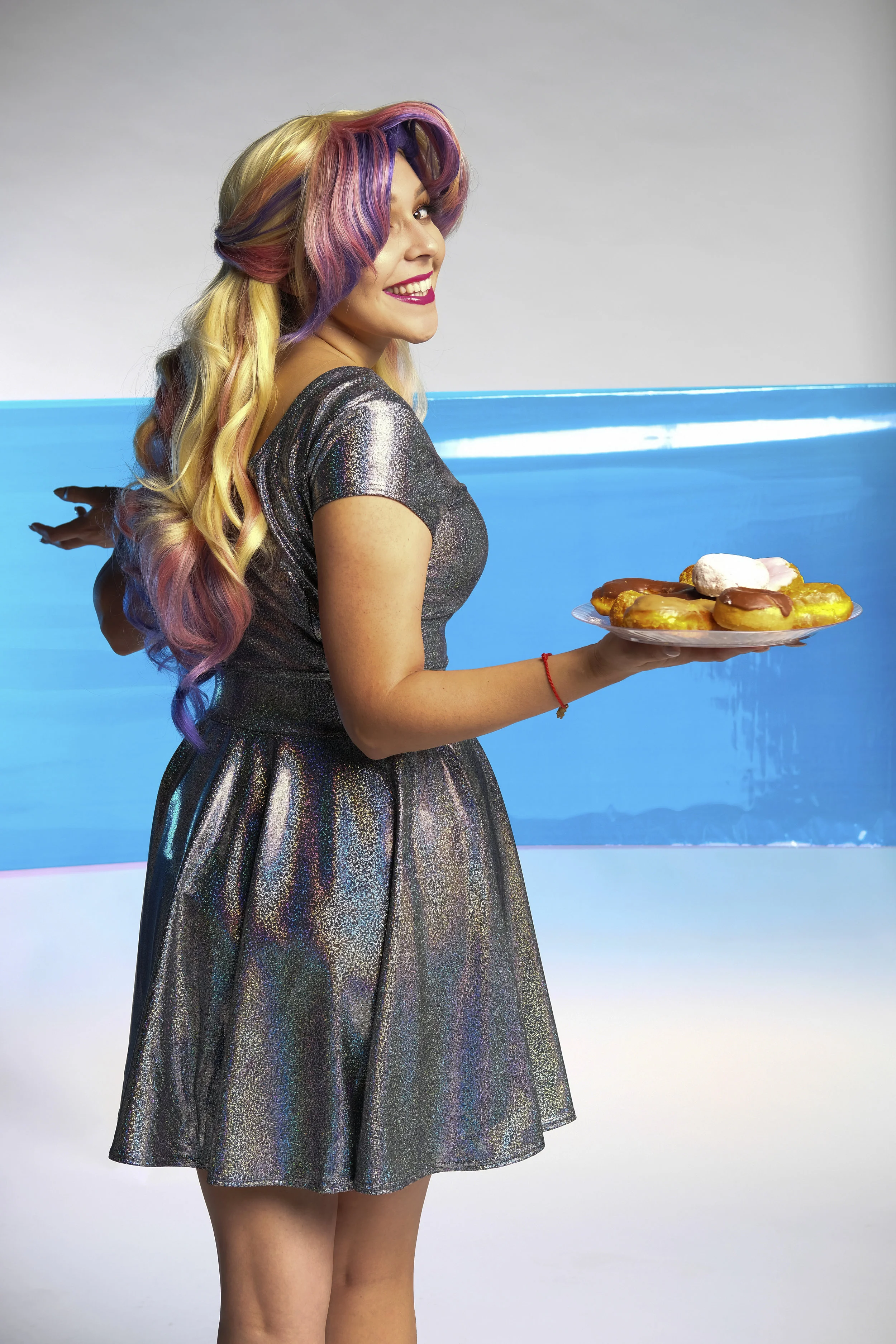 I had really been wanting to explore what we could do with colors. And if you ever look at donuts some are made to be really eye catching with the frosting and toppings. So this seemed like a good avenue to see what could be done there. Mermaid Child mentioned the wig she had... and we knew we had to do it. Now we just needed to figure out the rest out of the outfit among other pieces.