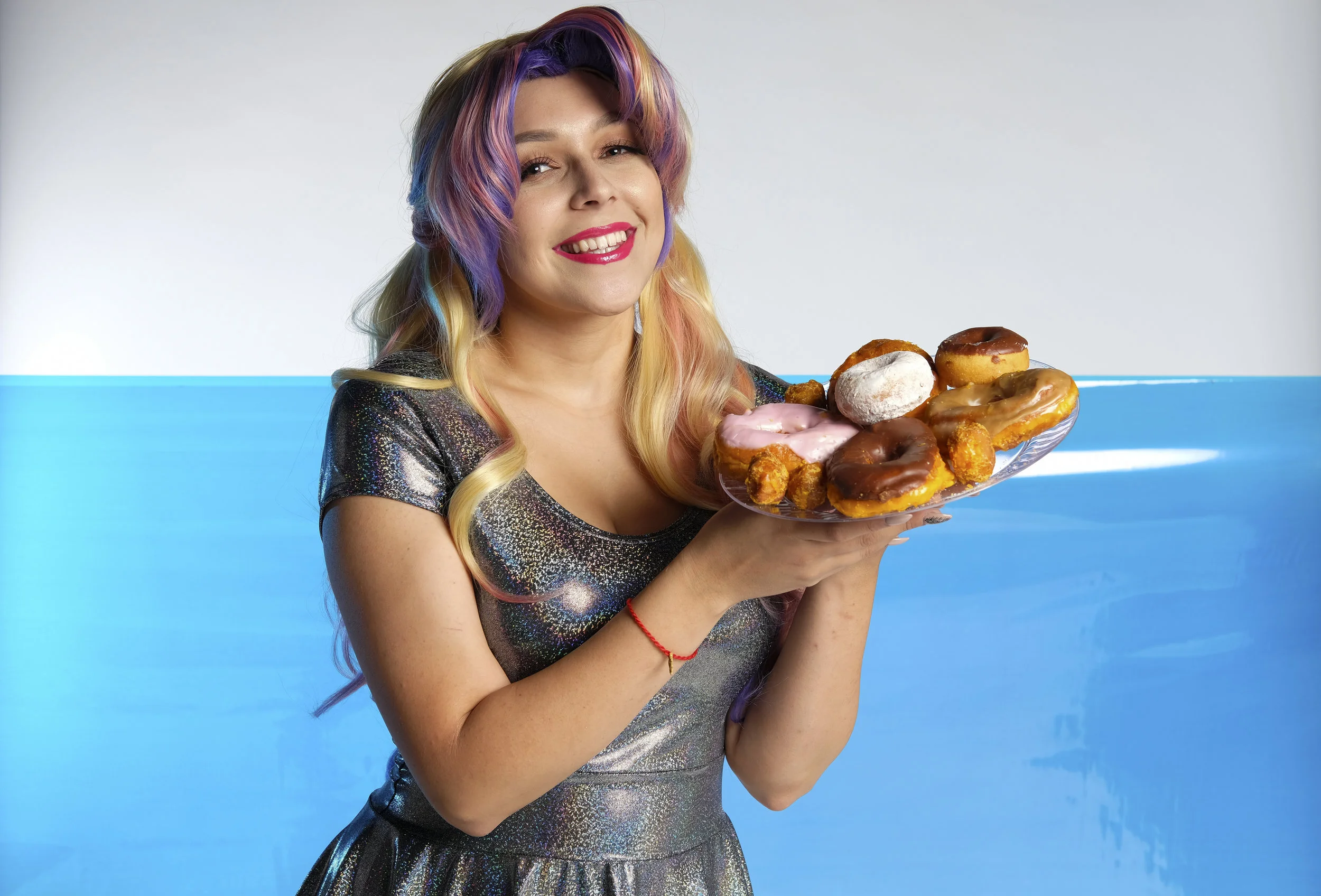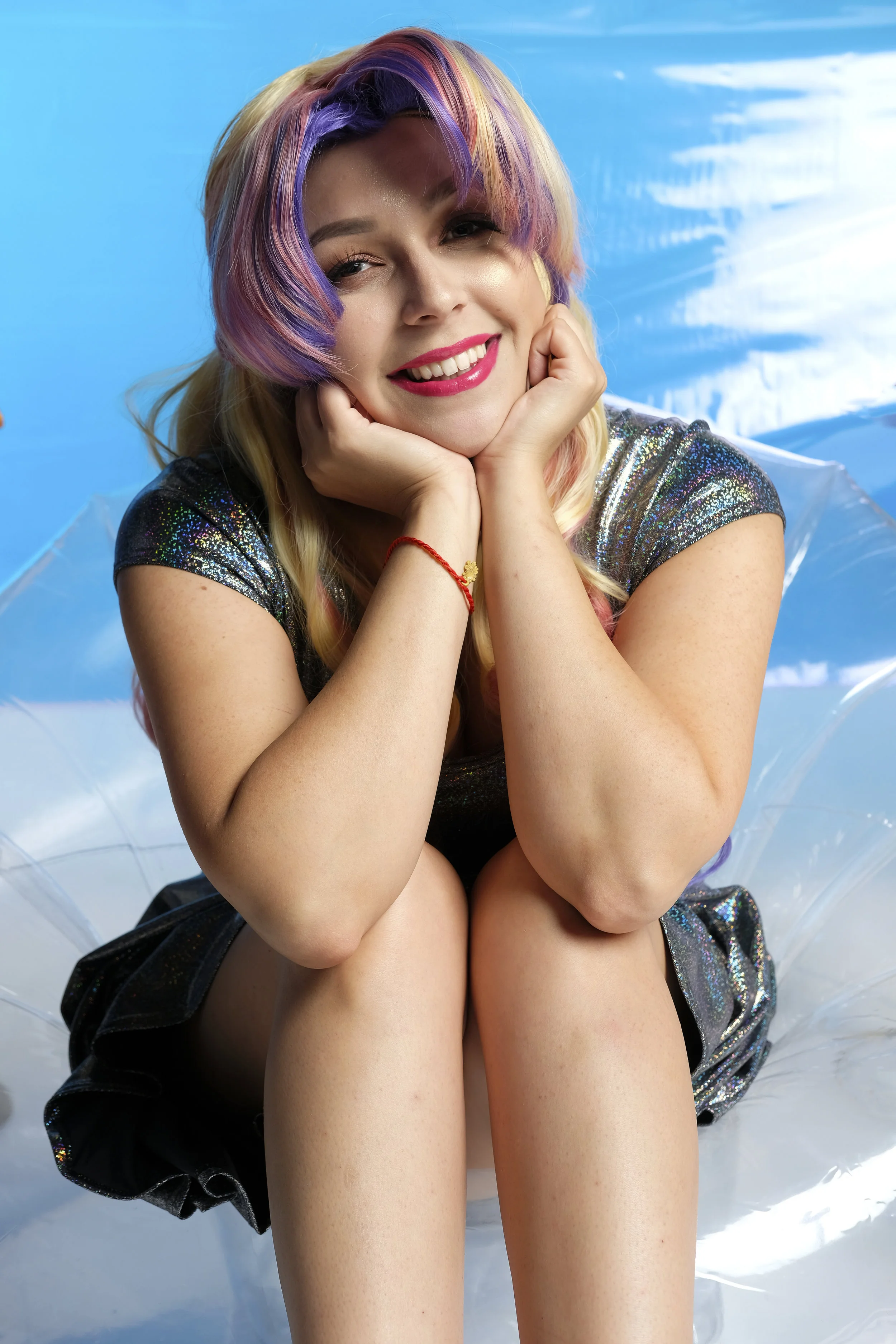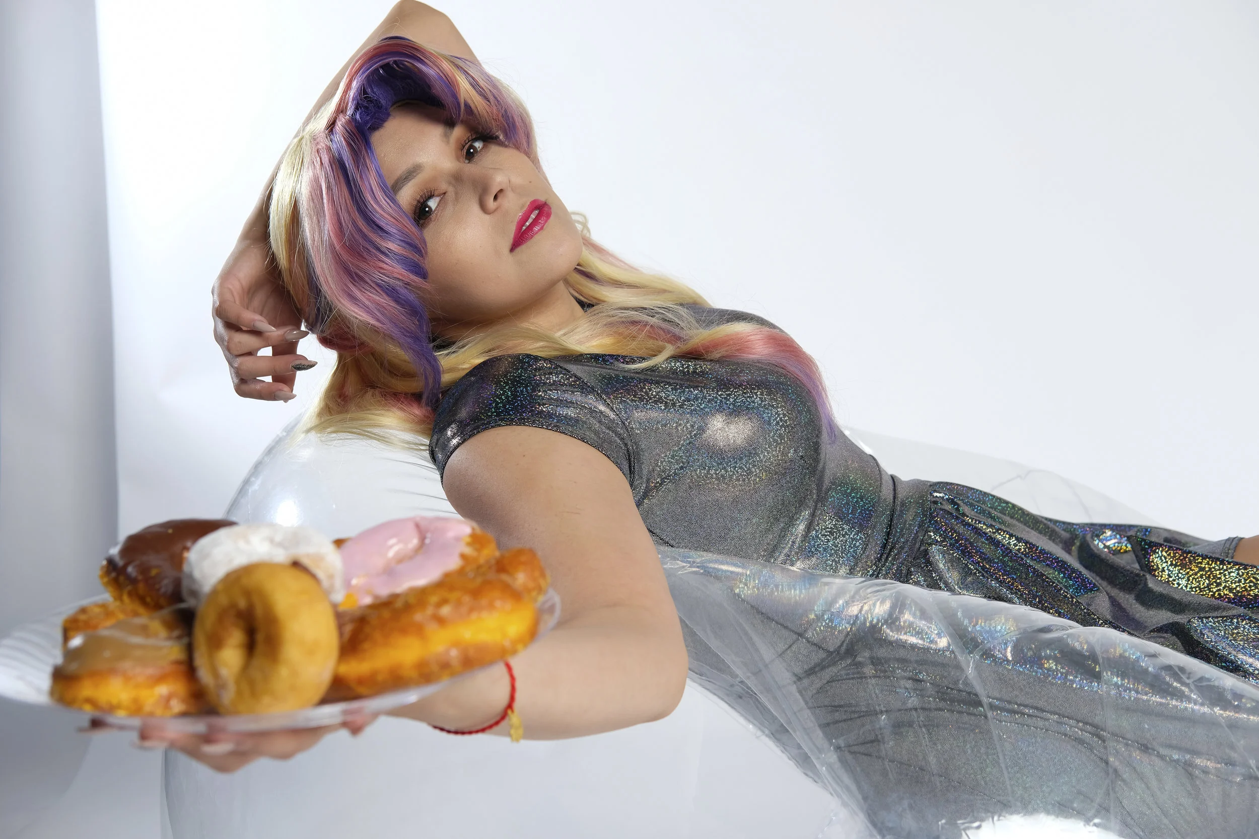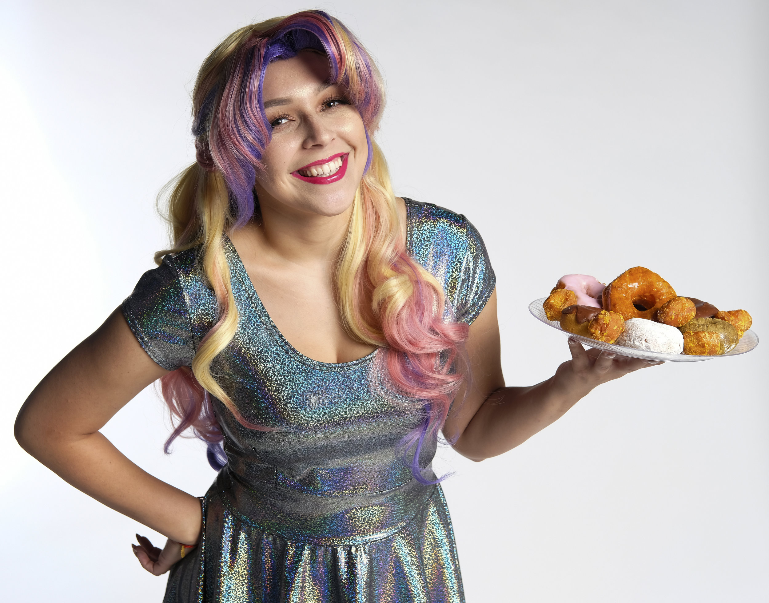 I had really been wanting to explore what we could do with colors. And if you ever look at donuts some are made to be really eye catching with the frosting and toppings. So this seemed like a good avenue to see what could be done there. Mermaid Child mentioned the wig she had... and we knew we had to do it. Now we just needed to figure out the rest out of the outfit among other pieces.