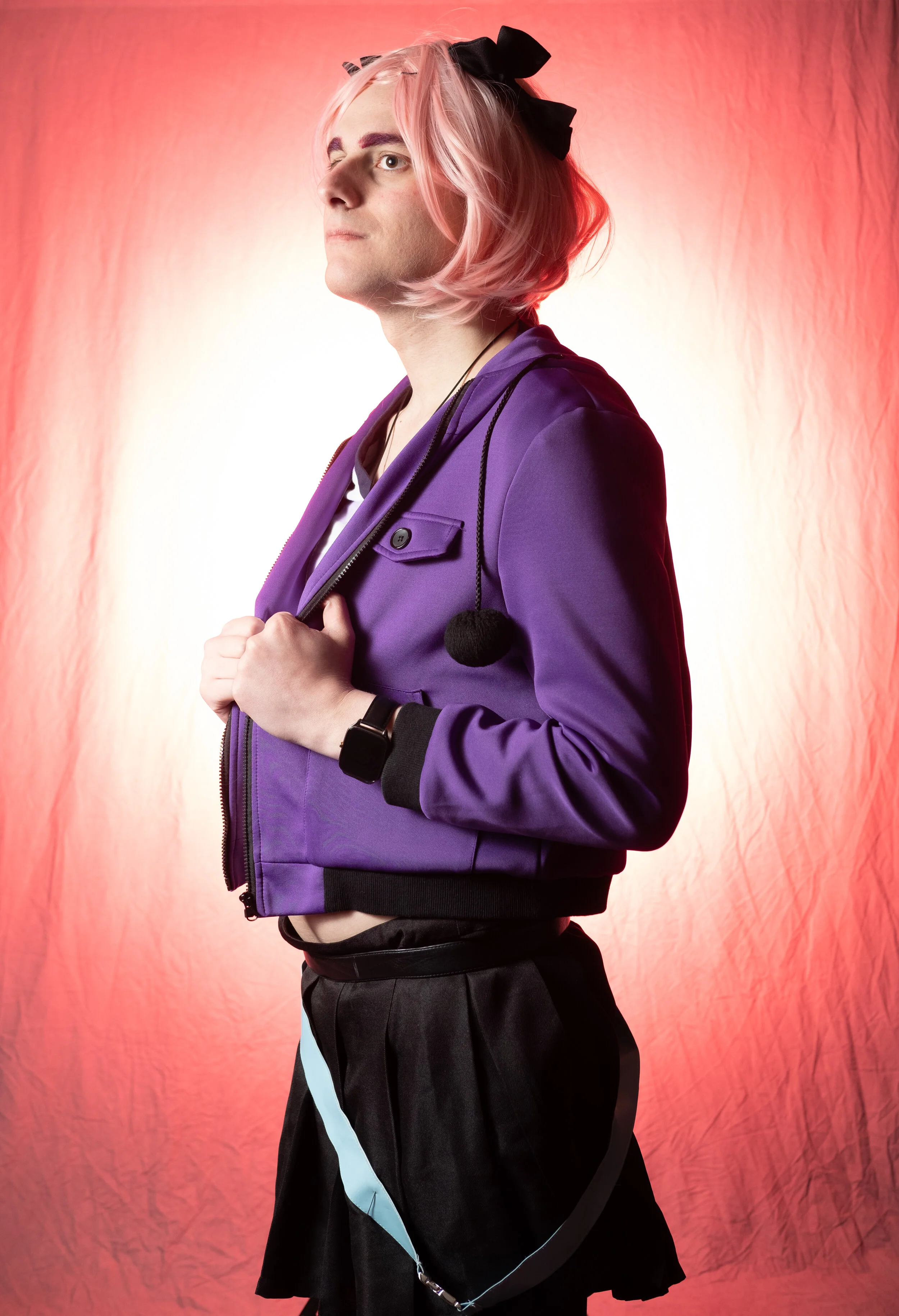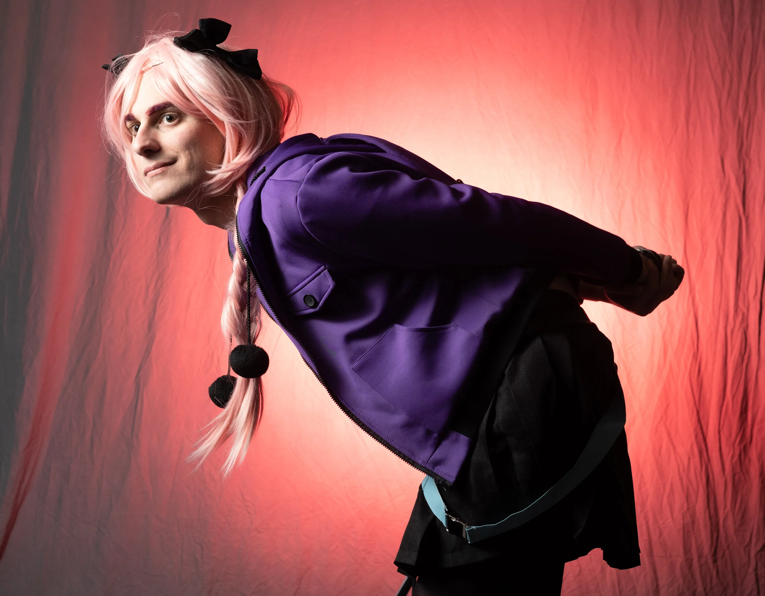 The Art of Paying Attention certainly came into play here. While we were working with the cosplayer dressed as Astolfo from Fate/Apocrypha (also known as Best Boy) there was an idea I wanted to initially to show off. Due to me actually having the power on one strobe up too high it didn't quite fit. But it did lead into a discussion on how to use high key backgrounds as a photo technique. There was a good back-and-forth with the audience about how to use both techniques.