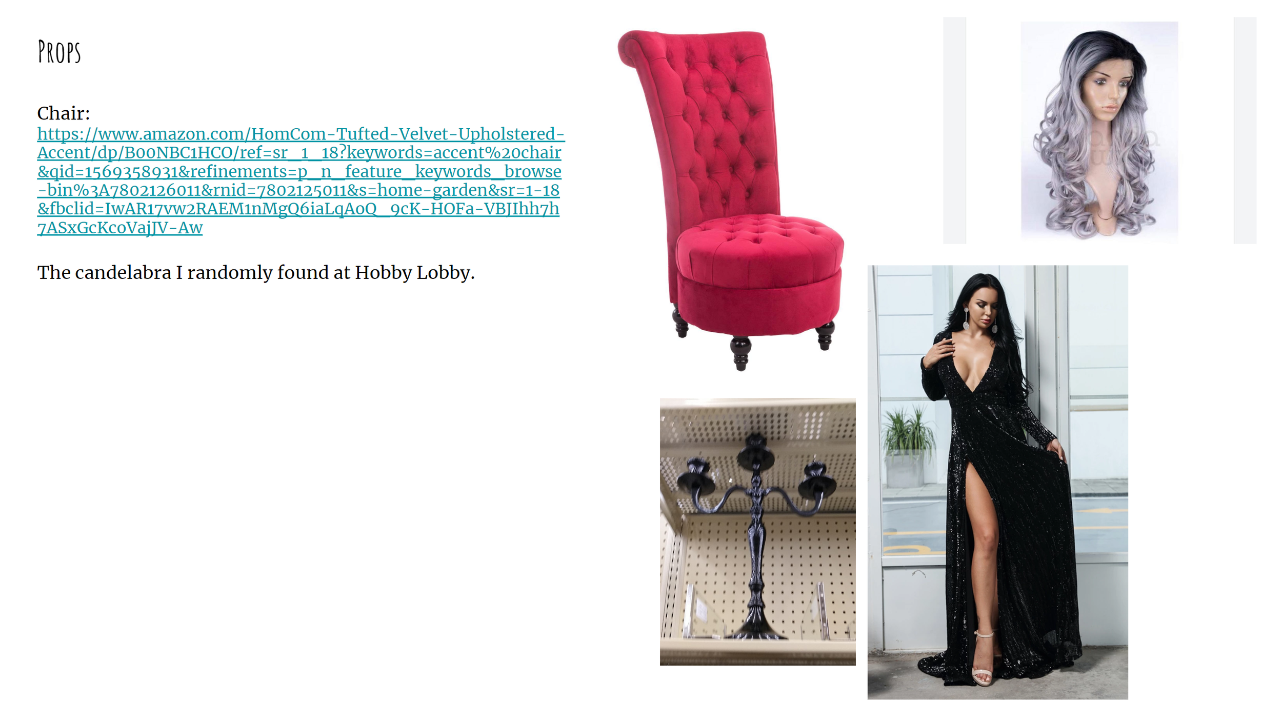 Much like Costumes/Outfits/Wigs we will have slides that contain images and links to things we’re considering using. Now we may not list everything we use in our projects as we often randomly run into items a few days before we shoot a project. We primarily will document things that we may need to hunt down online.