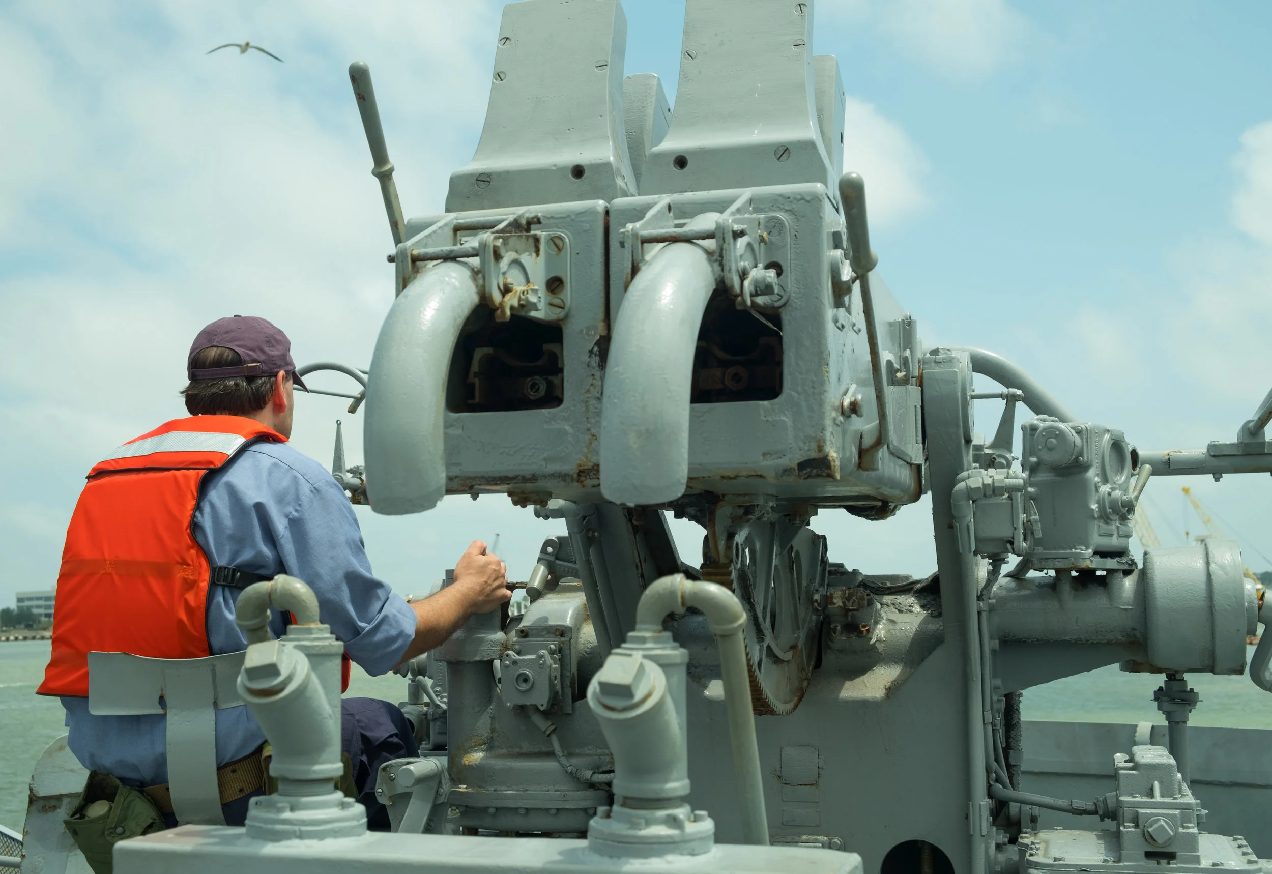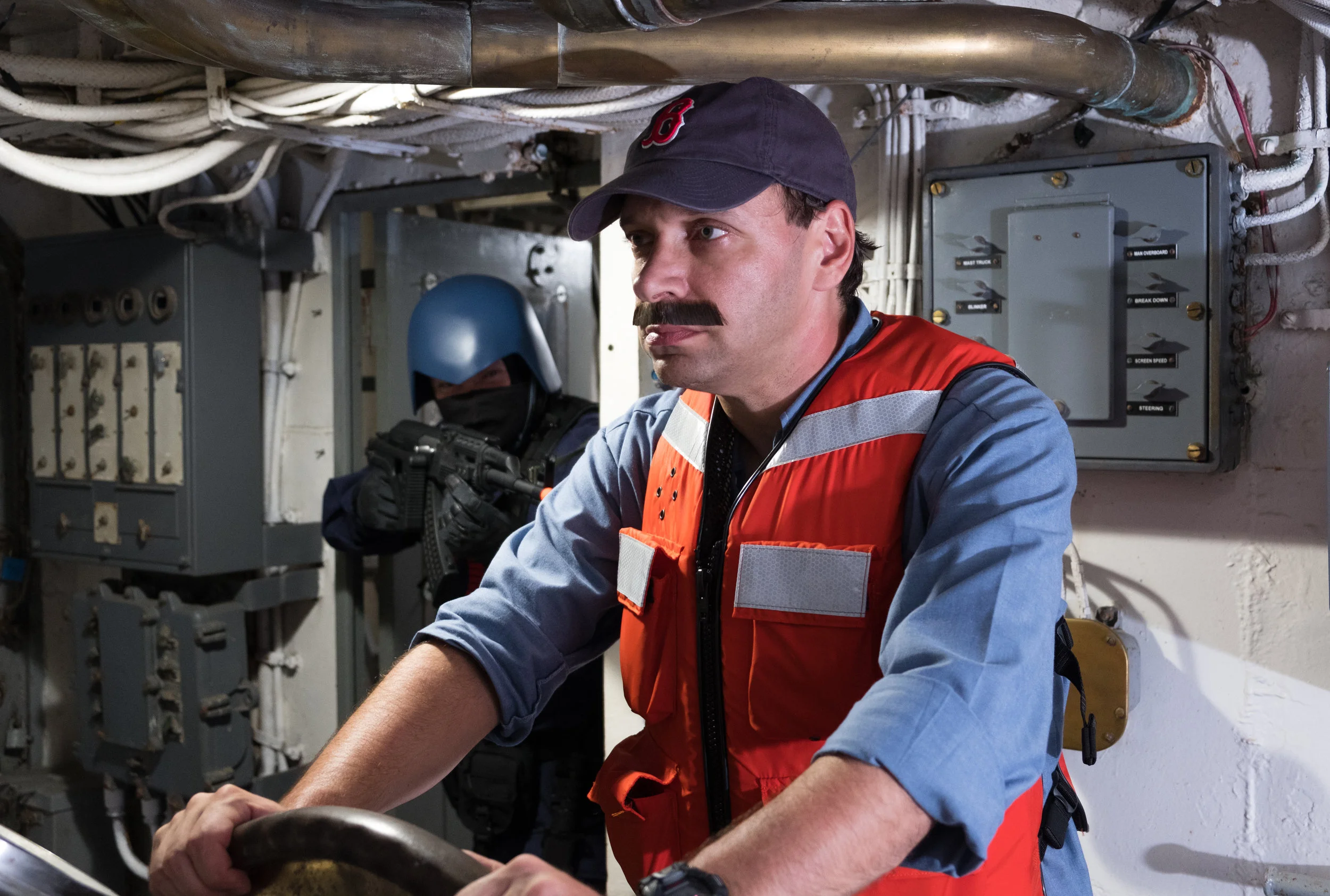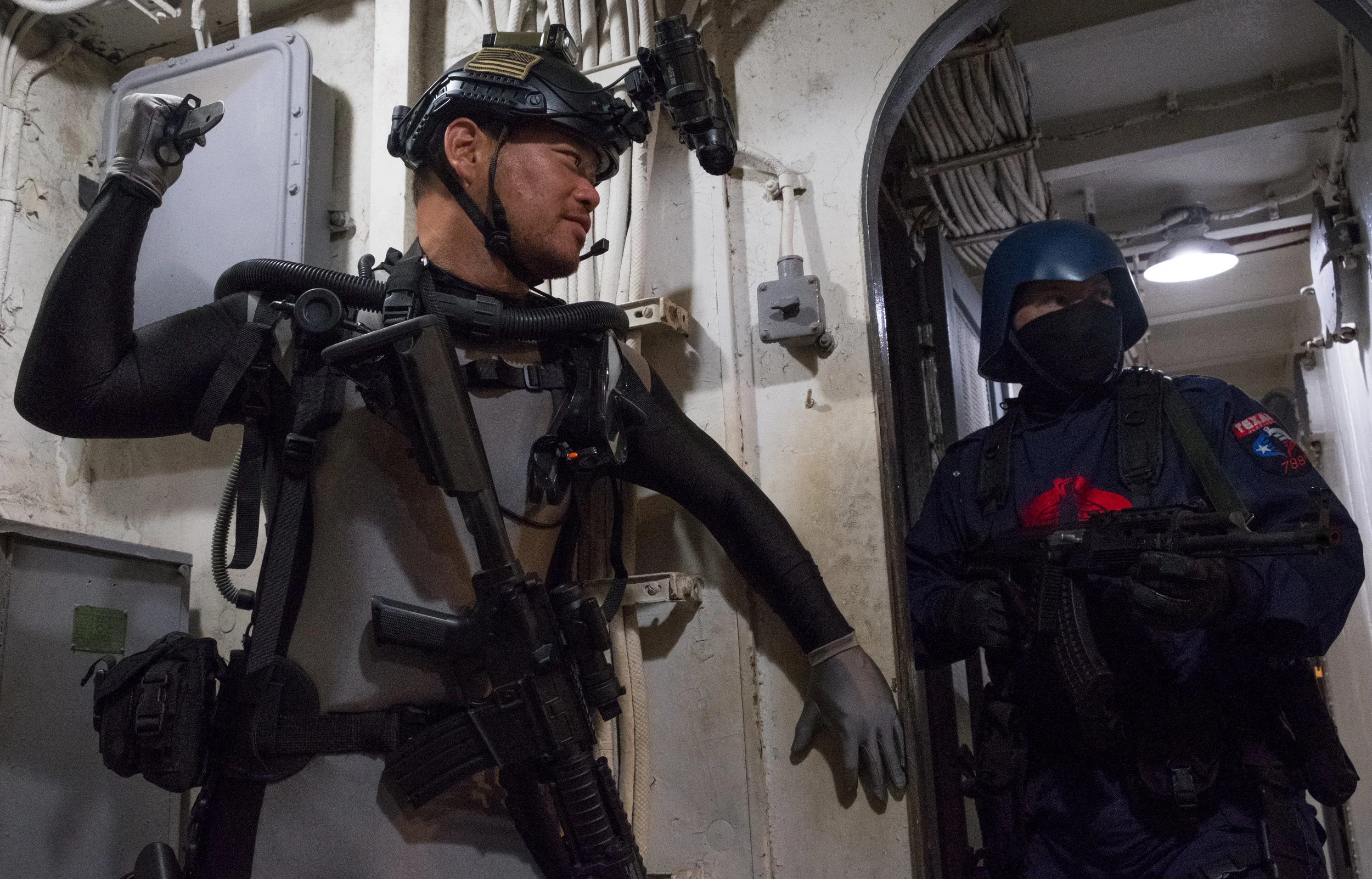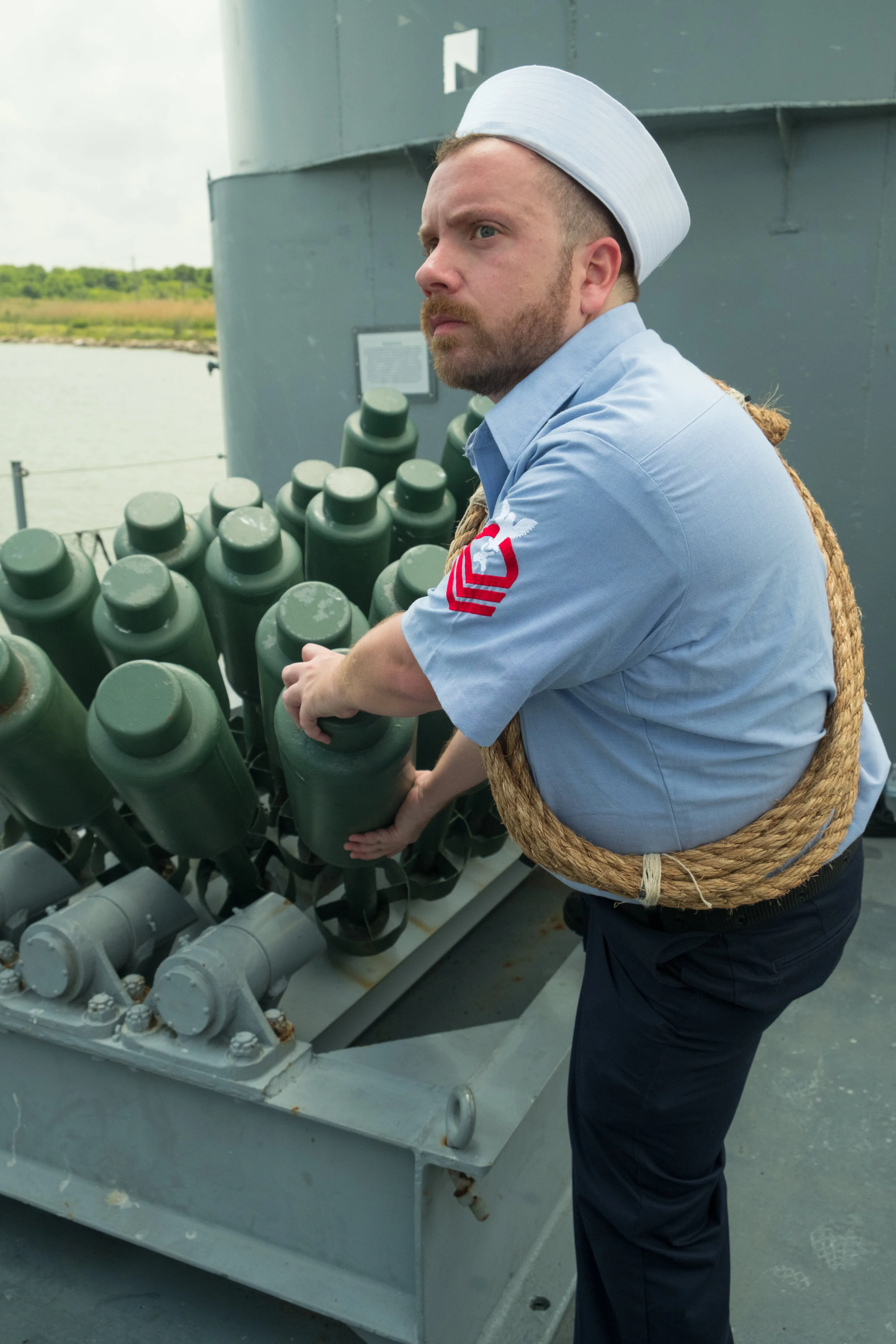 The bulk of the shots were done on the USS Stewart. There was a bit more room to get interesting angles and fight scenes. Though during the day I had to make a point to stay on my feet as much as possible as trying to kneel on the deck of the ship would quickly have me going "ow ow ow" due to the heat. We even waited until nightfall to get more of the inside shots since otherwise it would basically be like an oven in most of the ship.