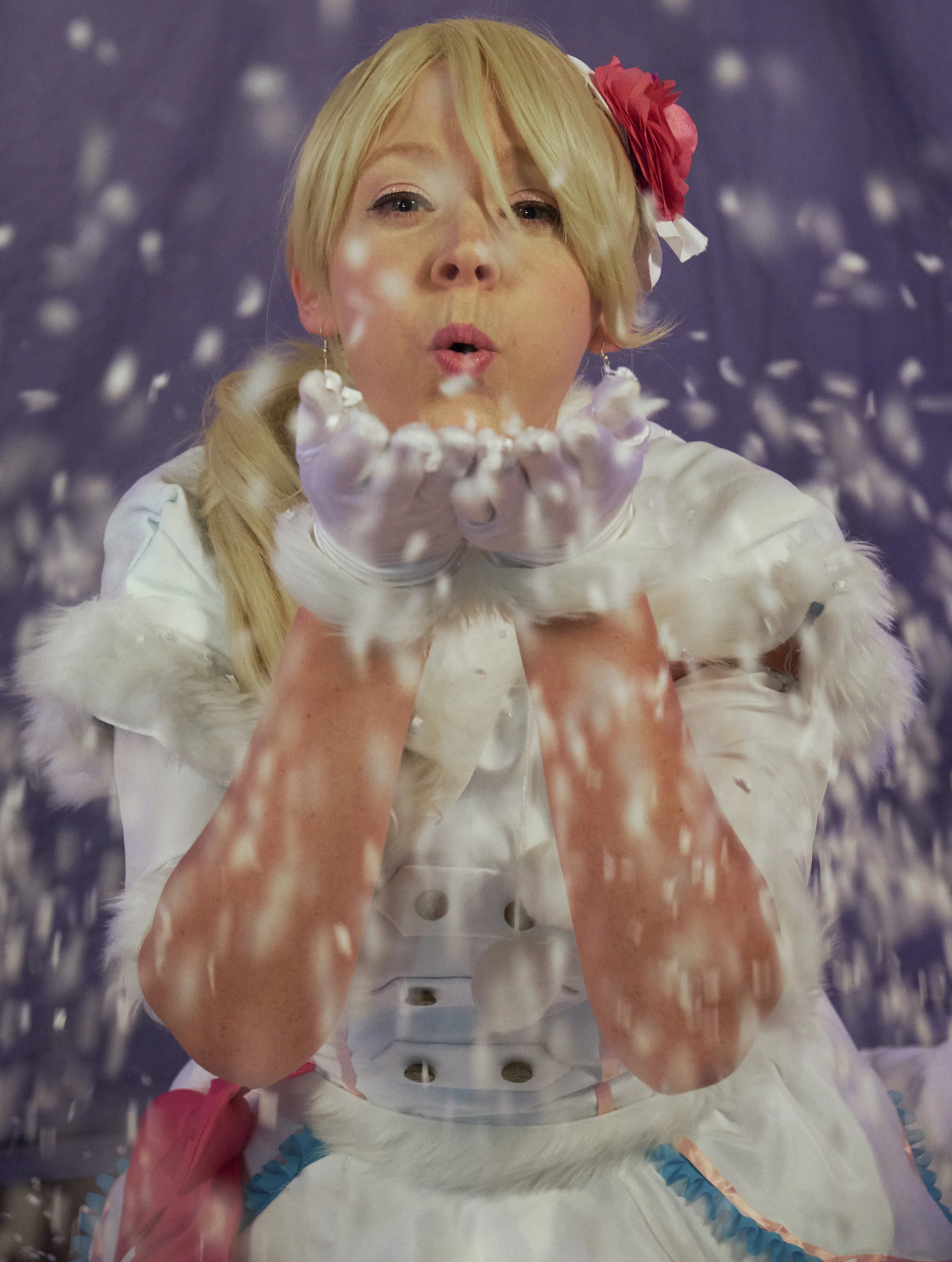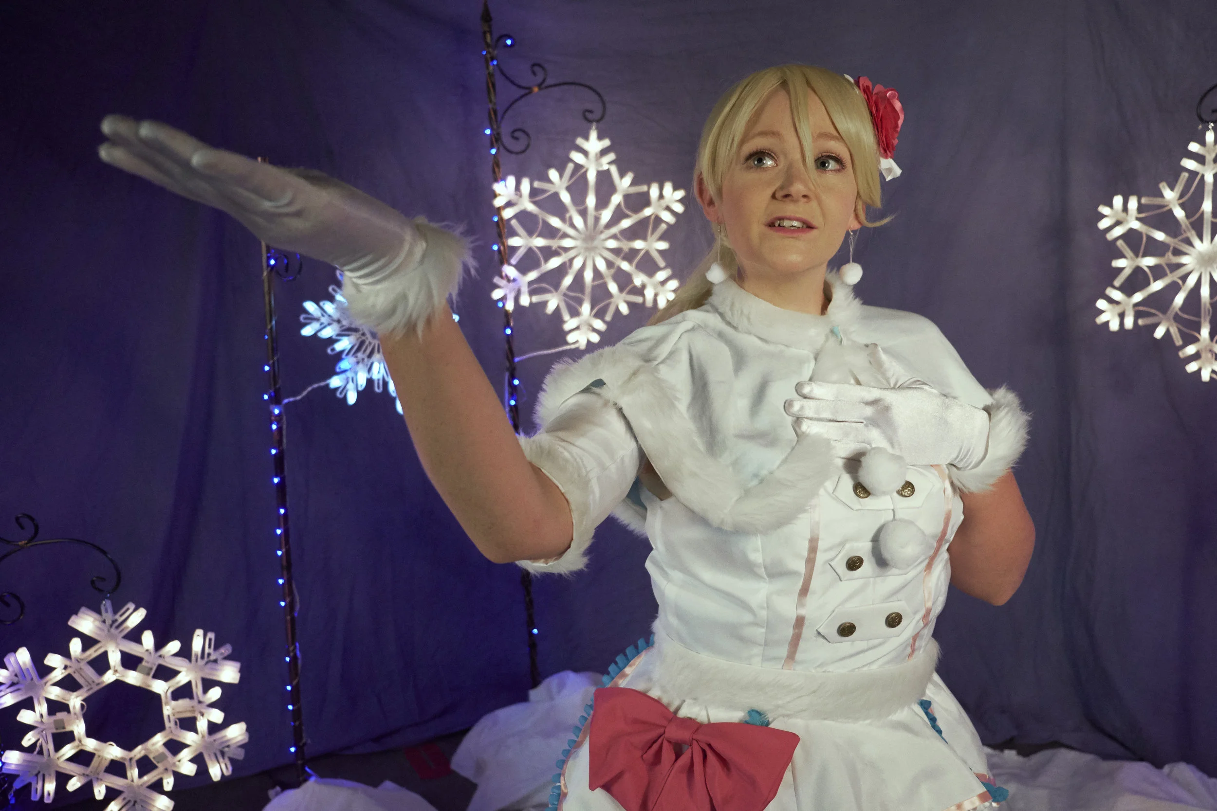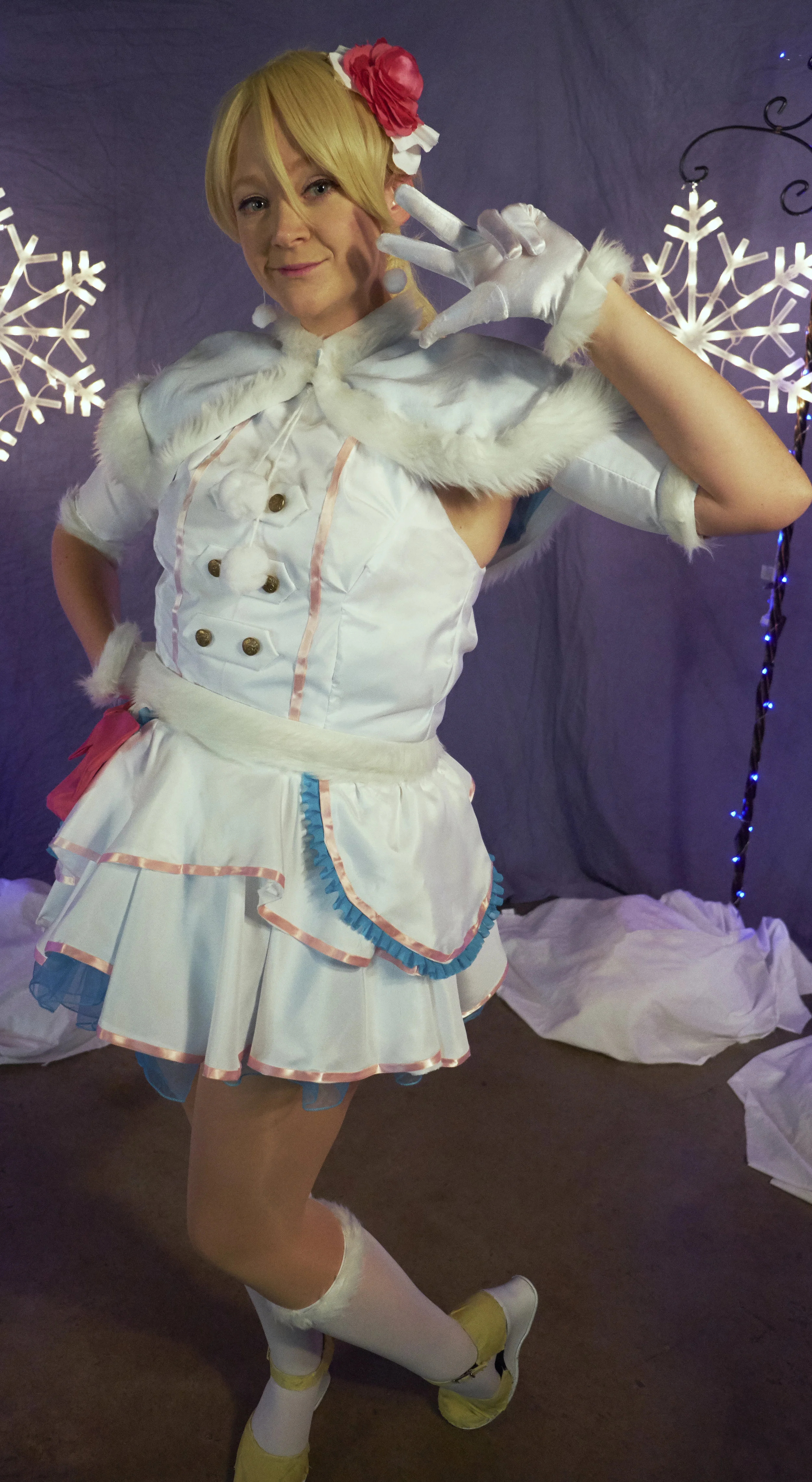 This was one of the more involved shoots I've been a part of. When Allybelle Cosplay and I were first discussing ideas for shooting Snow Halation Eli we figured out fairly quickly that doing this one outside was a non-starter. Given that it's summer this version of Eli wouldn't make sense with all of the greenery around. Plus when it's summer in Texas... yeah, would prefer to avoid that.